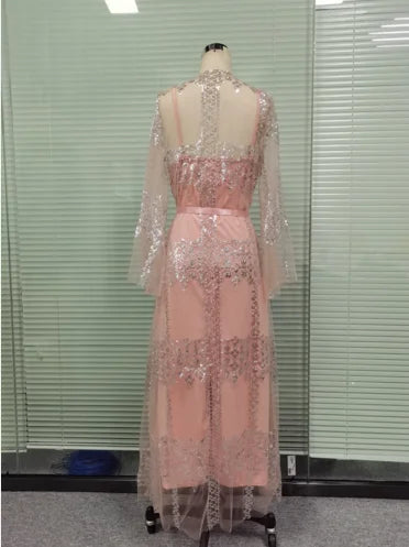 2025 Abaya Dubai Muslim Luxury Dress High Class Embroidery Lace Sequins Ramadan Kaftan Isla African Clothes 2 Piece Set